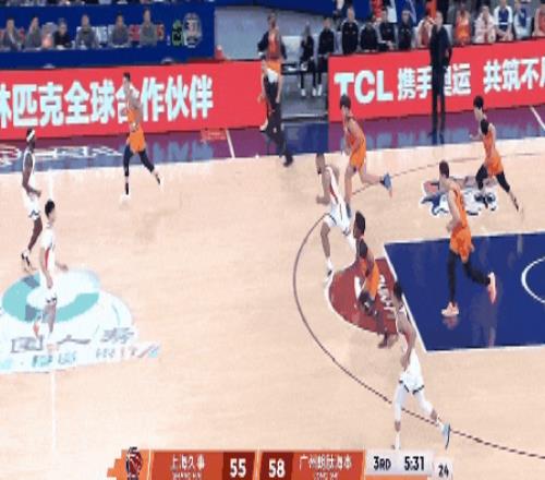 易边再战,上海男篮有不少个人的精彩发挥:王哲林展现梦幻脚步,古德温灵机一动的造3分犯规。