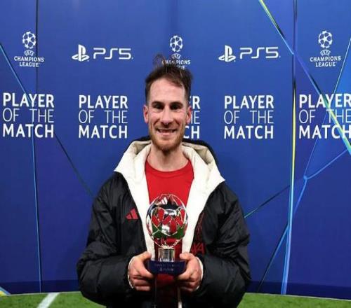 欧冠联赛阶段第8轮,利物浦主场6-0大胜卡拉巴赫,此役上演梅开二度的利物浦中场麦卡利斯特当选欧冠官方全场最佳球员。